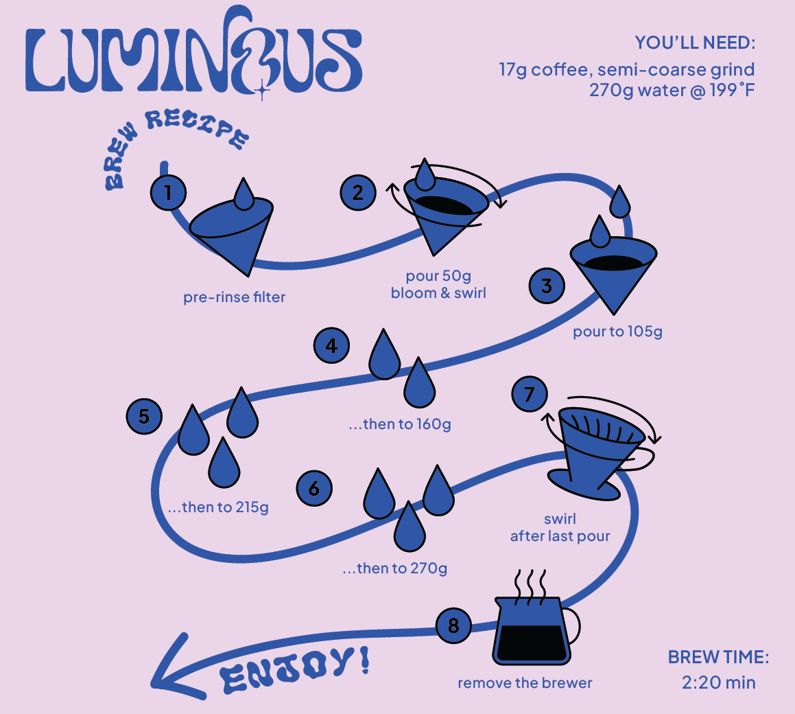 This Pink Bourbon is produced using Elkin Guzman’s Tartaric Acid Cold Room Natural method, a multi-stage fermentation protocol built around oxidation, organic acid application, temperature control, and cold stabilization. Ripe cherries are first rinsed with cold water, then disinfected and floated in warm water with citric acid before undergoing 24 hours of oxidation in whole cherry. The coffee is then fermented in closed tanks with water and a tartaric acid solution at controlled temperatures to guide pH, microbial activity, and aromatic development. After a second oxidation stage, the cherries are sealed in GrainPro and placed into a cold room, slowing fermentation and locking in structure and clarity. The coffee is then slowly dried in parabolic dryers over several weeks and stabilized before milling, allowing the acidity-driven process to fully integrate while preserving precision, depth, and cup definition.